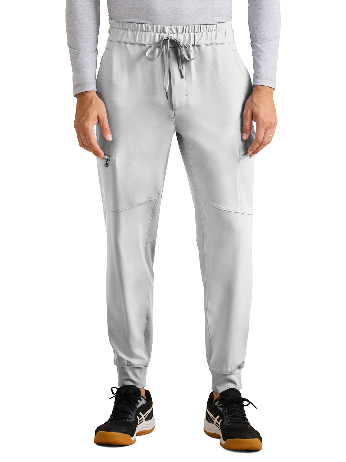 The Nolen pant features a men's modern fit with moisture wicking, 4-way stretch fabric. This mid rise jogger pant also features knit bottom cuffs and an elastic waistband with drawstring. Pockets include two front pockets, two back pockets, and two cargo pockets.