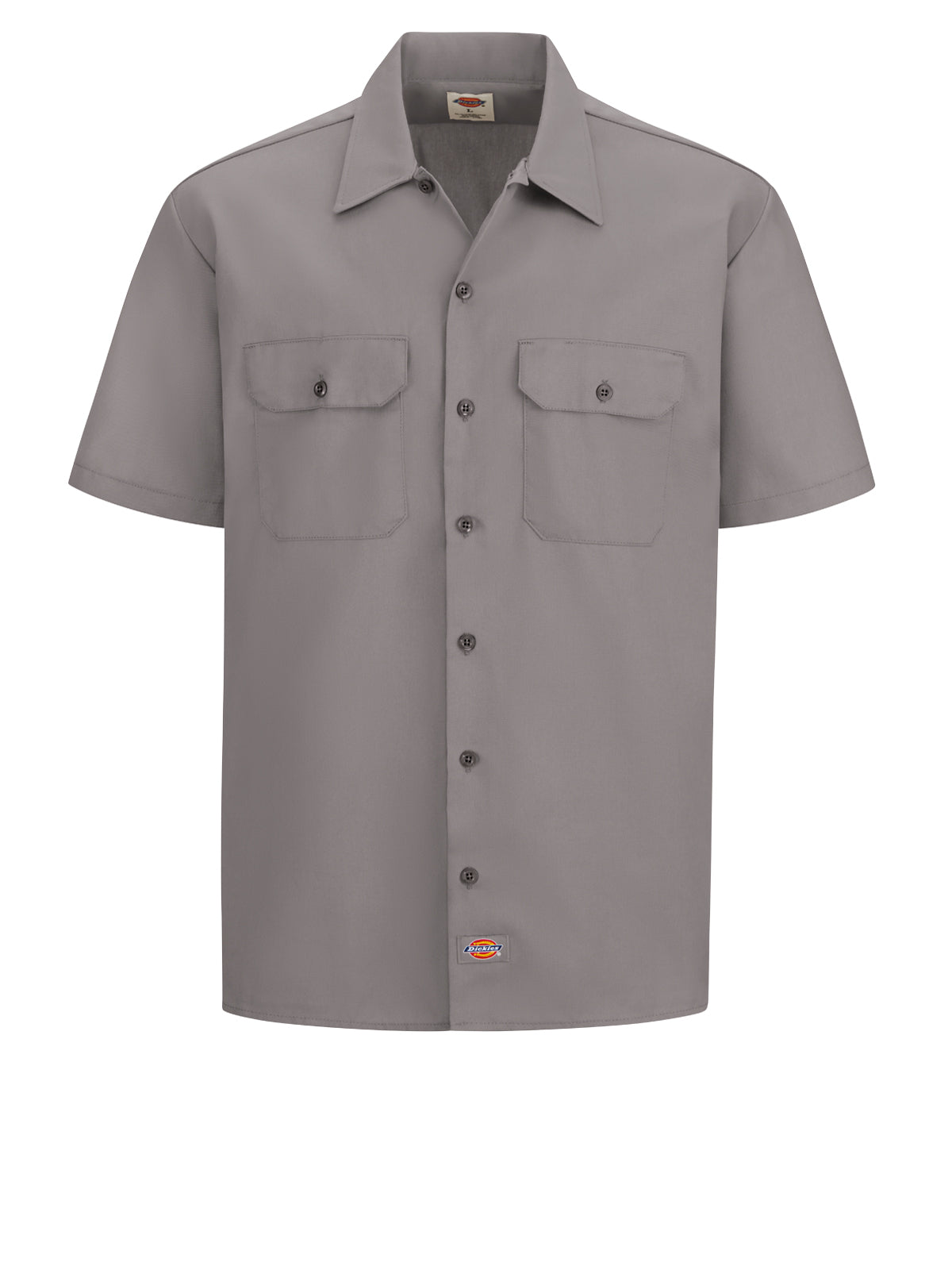 Dickies’ Short Sleeve Traditional Work Shirt features a generous cut through the shoulders and chest to give you plenty of room for movement. It has a square tail design that looks good tucked in or untucked. It's crafted from our sturdy polyester/cotton—a twill work cloth woven for durability and longevity. This shirt will also help you stay dry with its moisture-wicking properties. For added utility, two chest flap pockets with button closure provide storage on the job. Other details include pencil division on left pocket, standard spread collar and dyed-to-match melamine buttons.