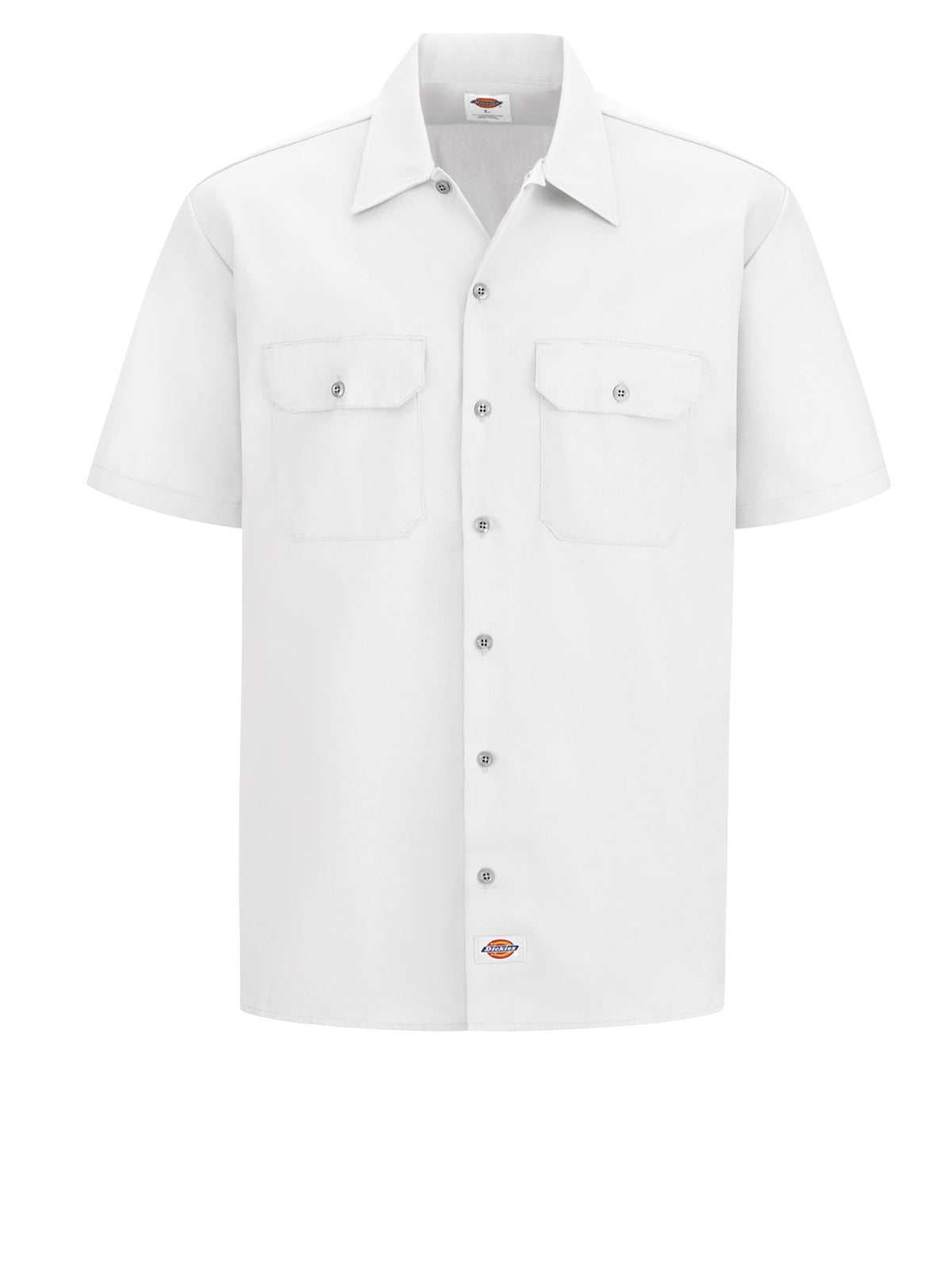Dickies’ Short Sleeve Traditional Work Shirt features a generous cut through the shoulders and chest to give you plenty of room for movement. It has a square tail design that looks good tucked in or untucked. It's crafted from our sturdy polyester/cotton—a twill work cloth woven for durability and longevity. This shirt will also help you stay dry with its moisture-wicking properties. For added utility, two chest flap pockets with button closure provide storage on the job. Other details include pencil division on left pocket, standard spread collar and dyed-to-match melamine buttons.