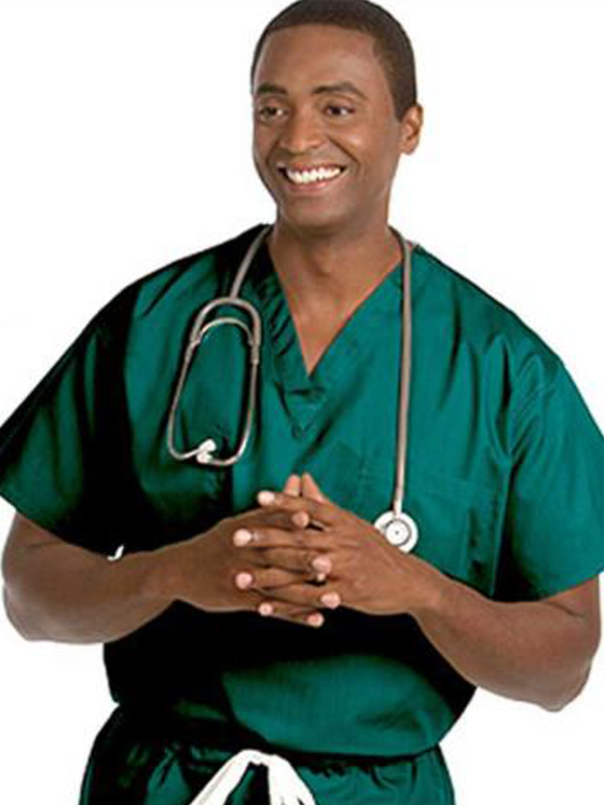 This unisex reversible scrub shirt features a reinforced bartacked V-neck, color-coded neck binding, and a left breast pocket.