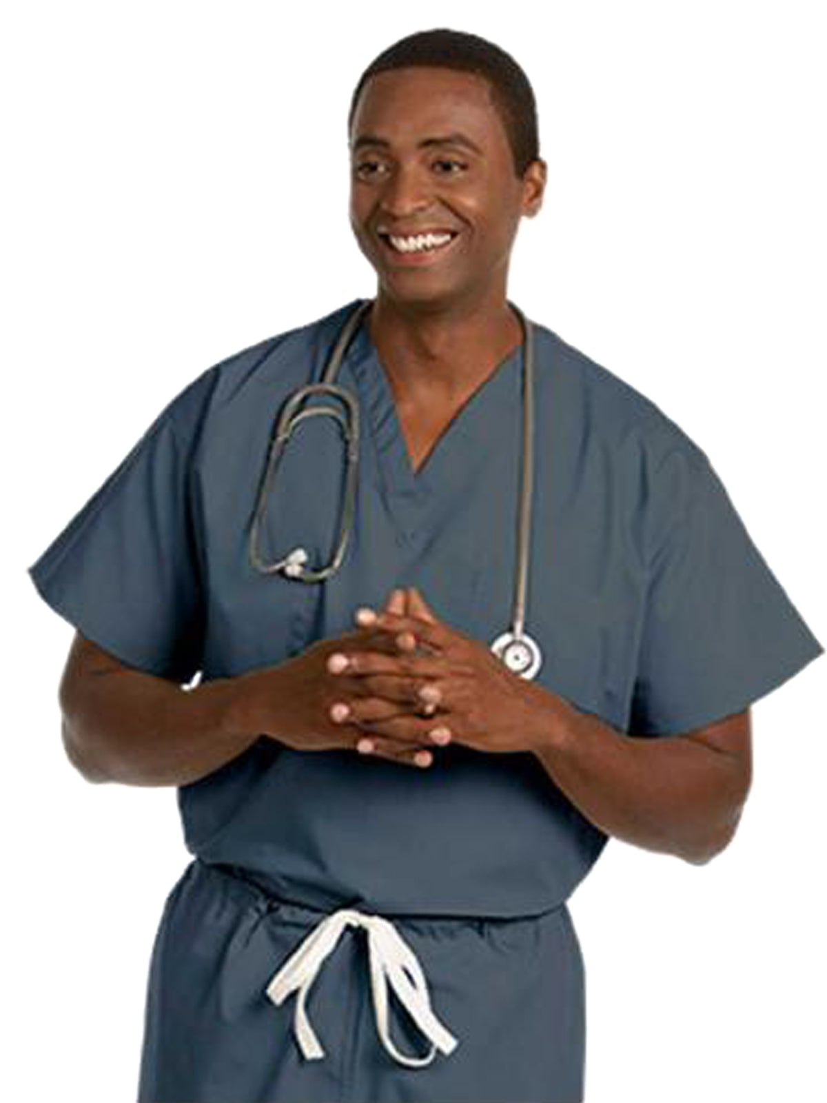 This unisex reversible scrub shirt features a reinforced bartacked V-neck, color-coded neck binding, and a left breast pocket.