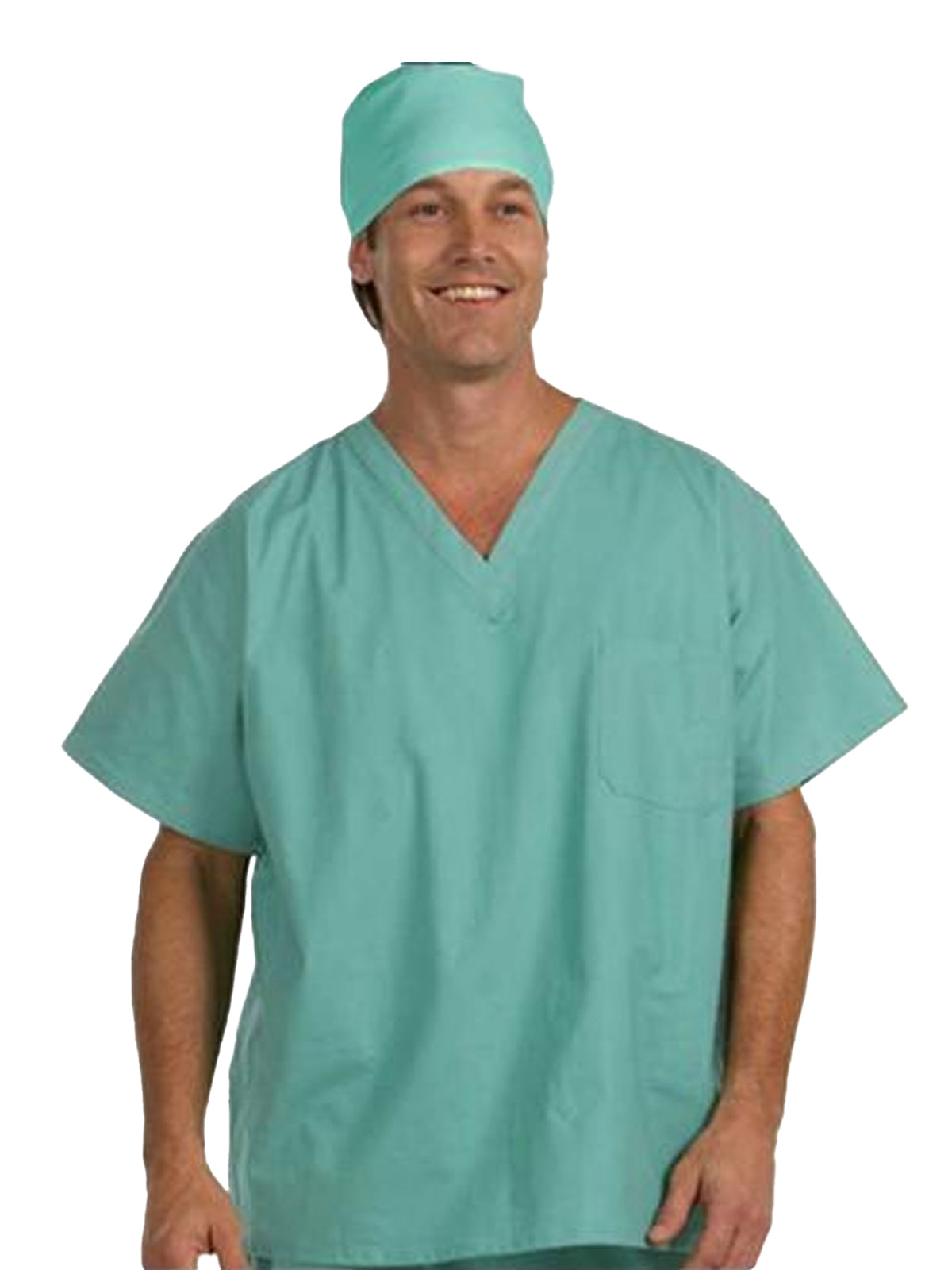 This reversible unisex scrub shirt features a color-coded neck binding, reinforced bartacked v-neck and a left breast pocket.