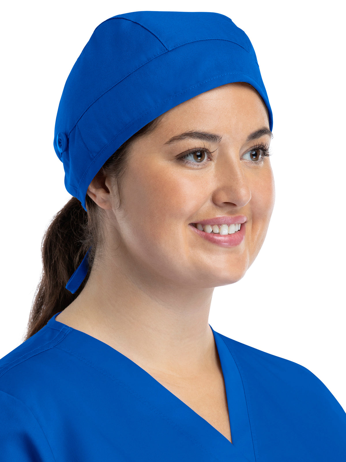 Cotton Rich Stretch Fabric. Ultra Soft. Cool Feeling. Light Weight. Features a White Terry-Cloth Sweatband. Back Elastic. Adjustable, Tie-Back Closure. One Size Fits All.
