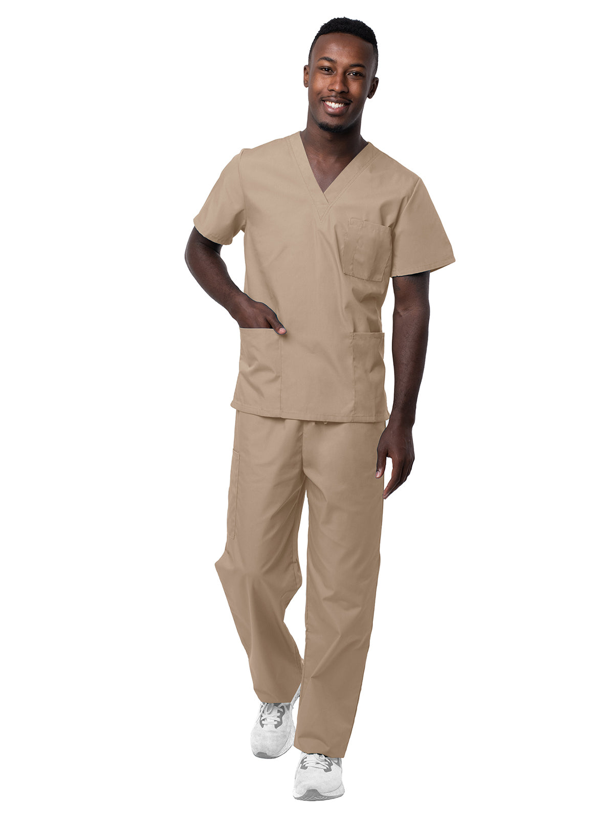 Unisex V-Neck Top Drawstring Pant Scrub Set