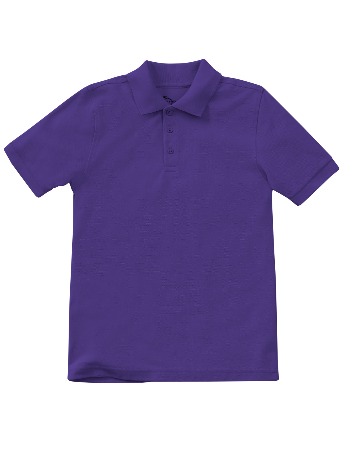 Combed cotton/poly blend in ringspun yarns, matching ribbed collar and banded sleeves, three-button placket with dyed-to-match buttons, reinforced shoulder seams and double-needle hem.
