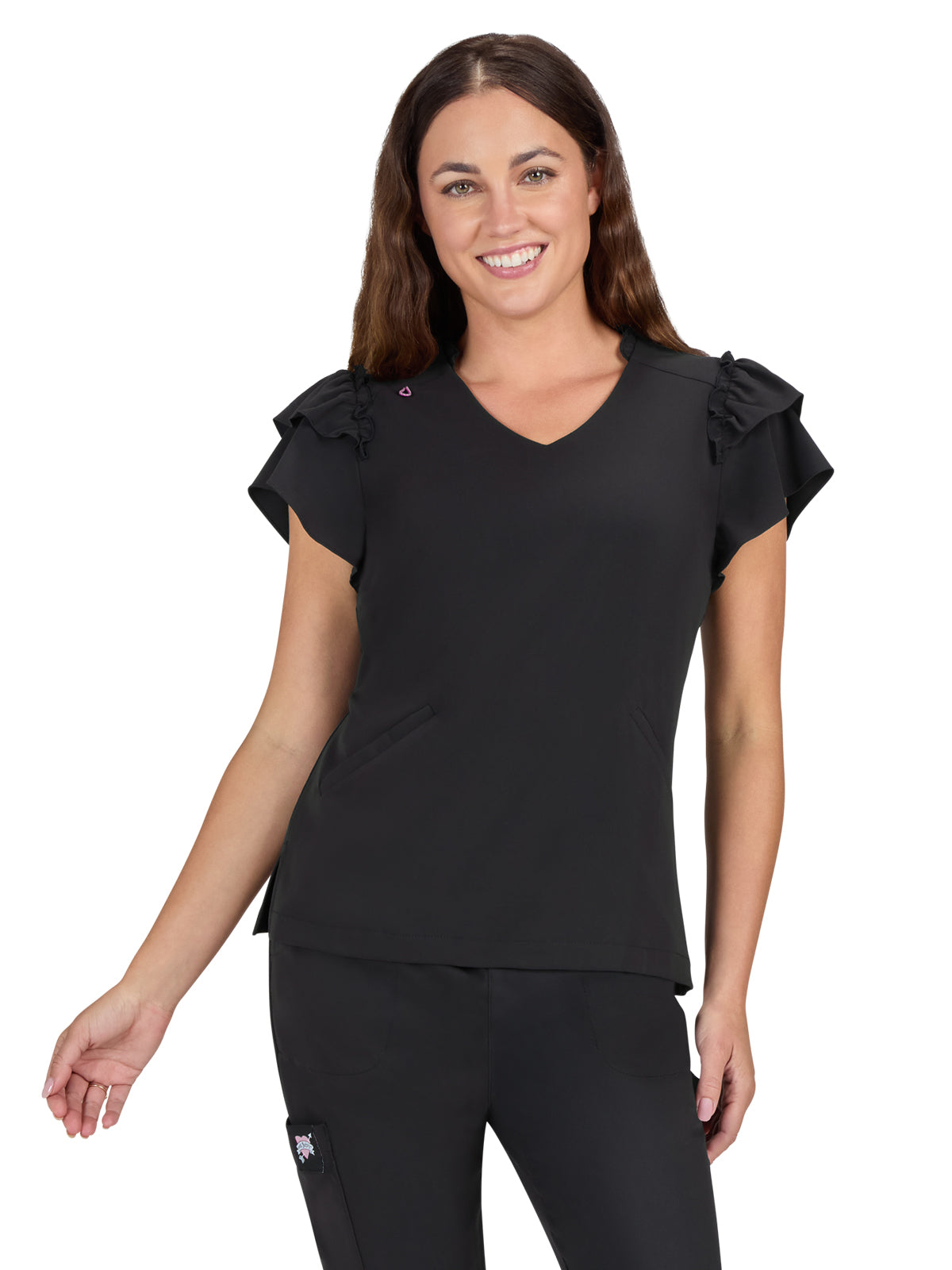 - Feminine Flair: This unique scrub top adds a touch of elegance to your workday with its charming ruffle details.