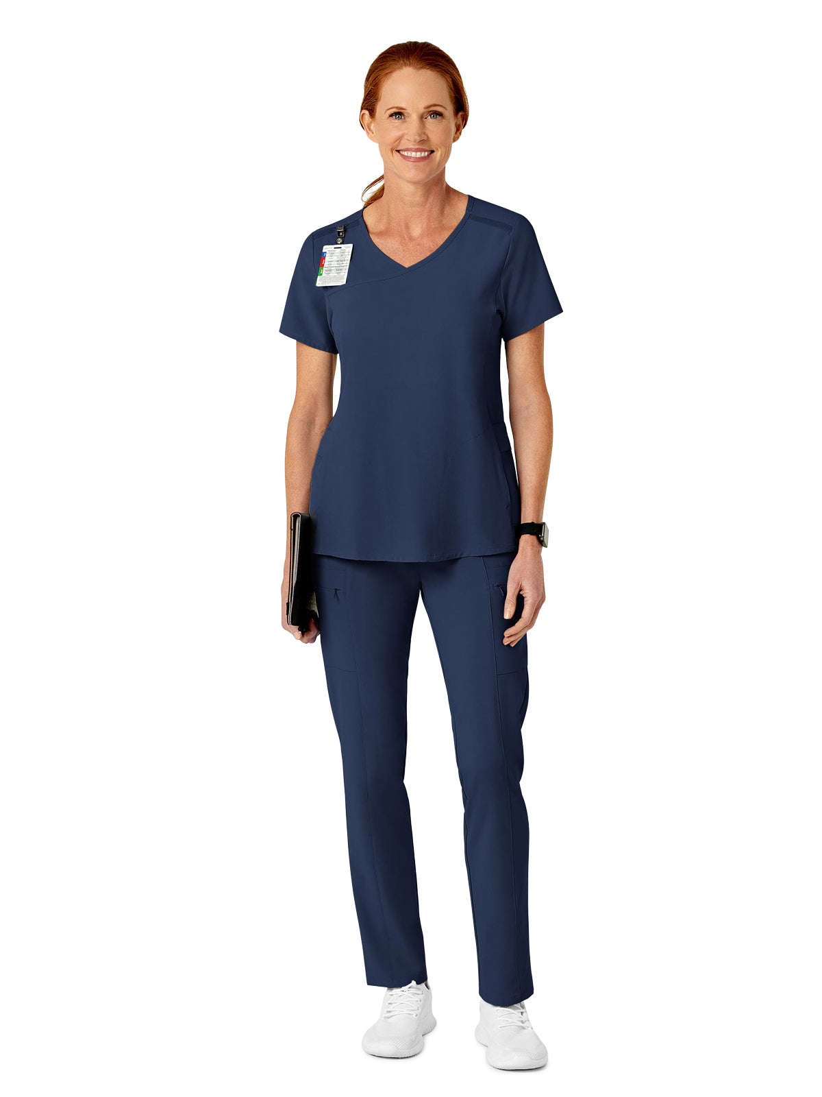 This slim leg, high waist pant features a soft boxer waist with full drawstring, two front sleek slash pockets, two invisible zip closure cargo pockets, and one back welt pocket. It also features an elongating seaming detail at front and back. Wear-tested for quality and durability. Hassle-free maintenance. Renew products are made from recycled fabric containing 5 plastic water bottles per garment. Regular Inseam: 28 1/2", Petite 26 1/2", Tall 30 1/2"