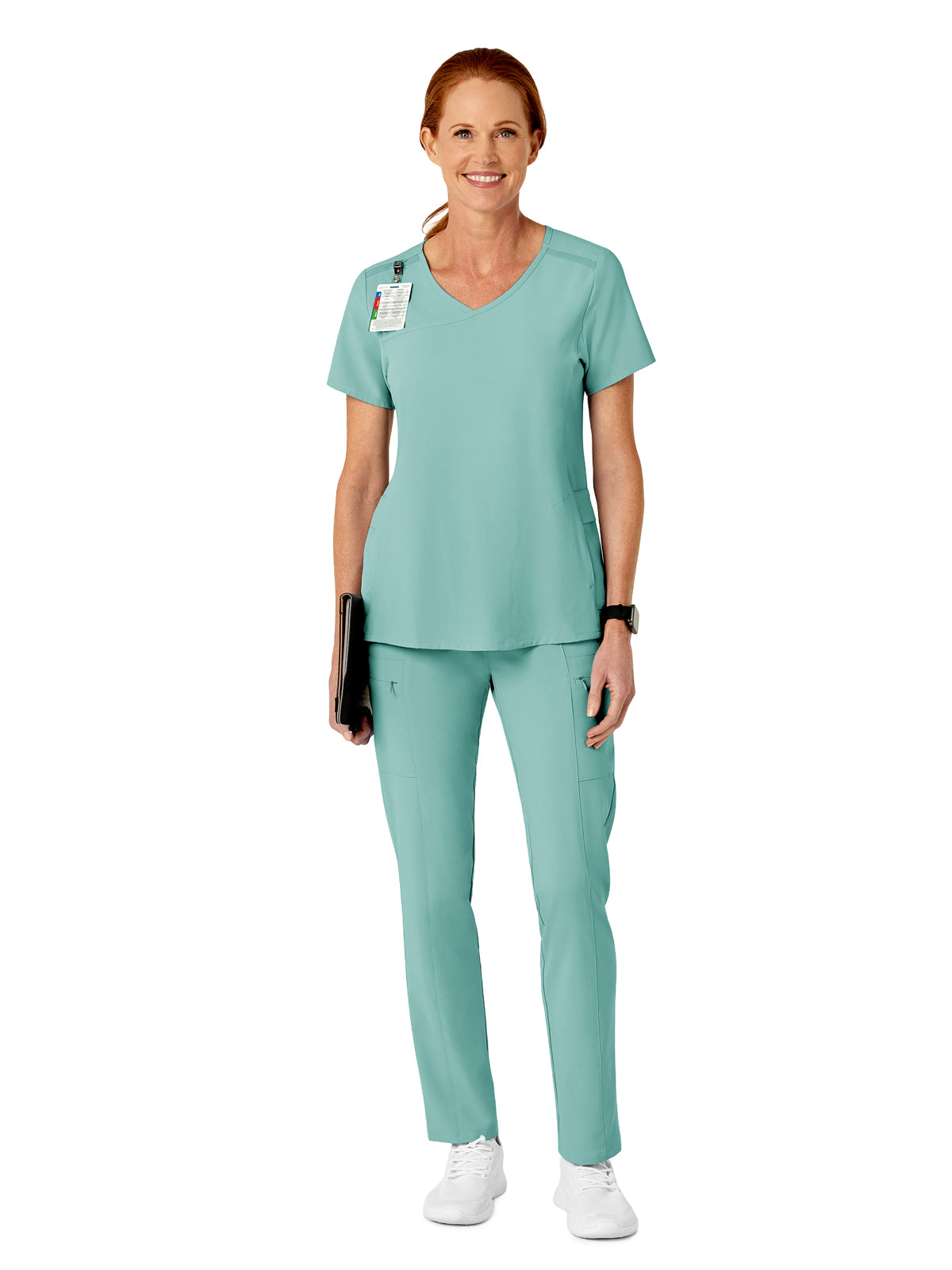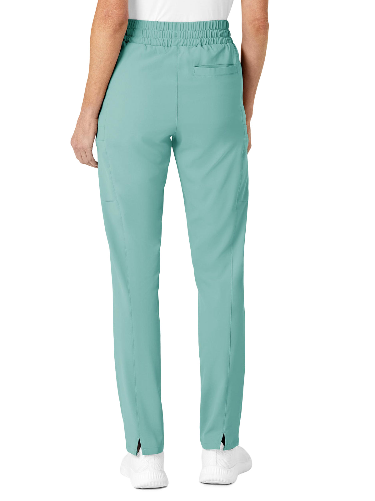 This slim leg, high waist pant features a soft boxer waist with full drawstring, two front sleek slash pockets, two invisible zip closure cargo pockets, and one back welt pocket. It also features an elongating seaming detail at front and back. Wear-tested for quality and durability. Hassle-free maintenance. Renew products are made from recycled fabric containing 5 plastic water bottles per garment. Regular Inseam: 28 1/2", Petite 26 1/2", Tall 30 1/2"