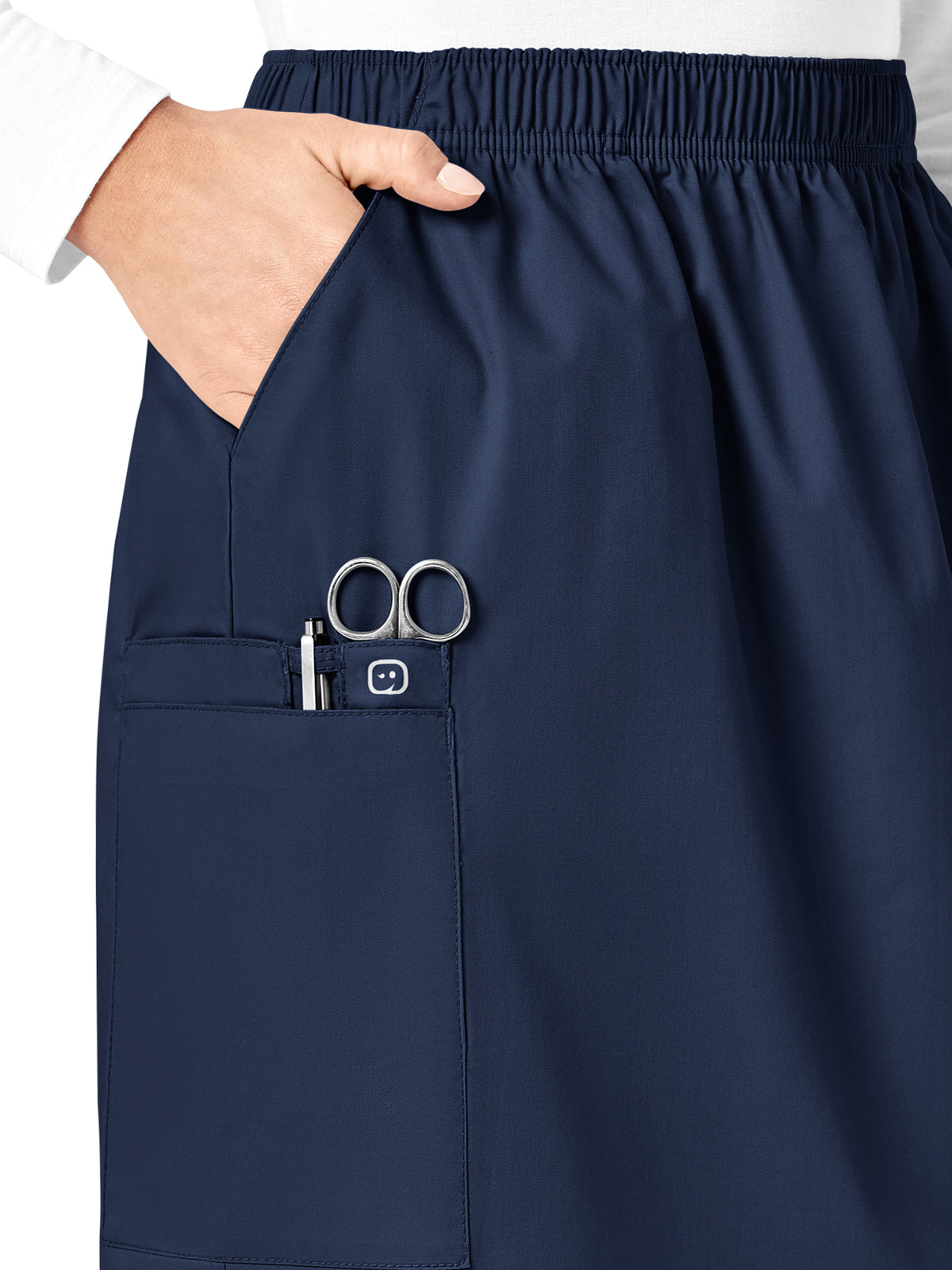 The WonderWink WonderWORK Cargo Skirt! This unique cargo skirt features a full elastic waist for ultimate security and coverage. Pockets inslude two slanted front pockets, and one double cargo pocket with a utility loop and pen slot.