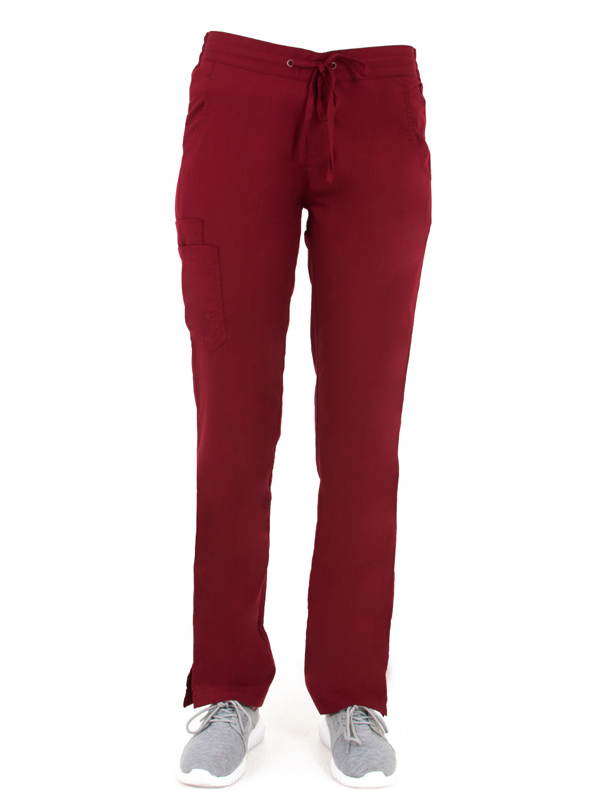 The LifeThreads Ergo 2.0 women's Modern fit utility pant features two front slant pockets, two back patch pockets, a stacked cargo pocket, low-rise waist, tapered leg, an elastic back waist with a flat front, and an adjustable front drawstring. Regular inseam: 31" Petite inseam: 29" Tall inseam: 33"