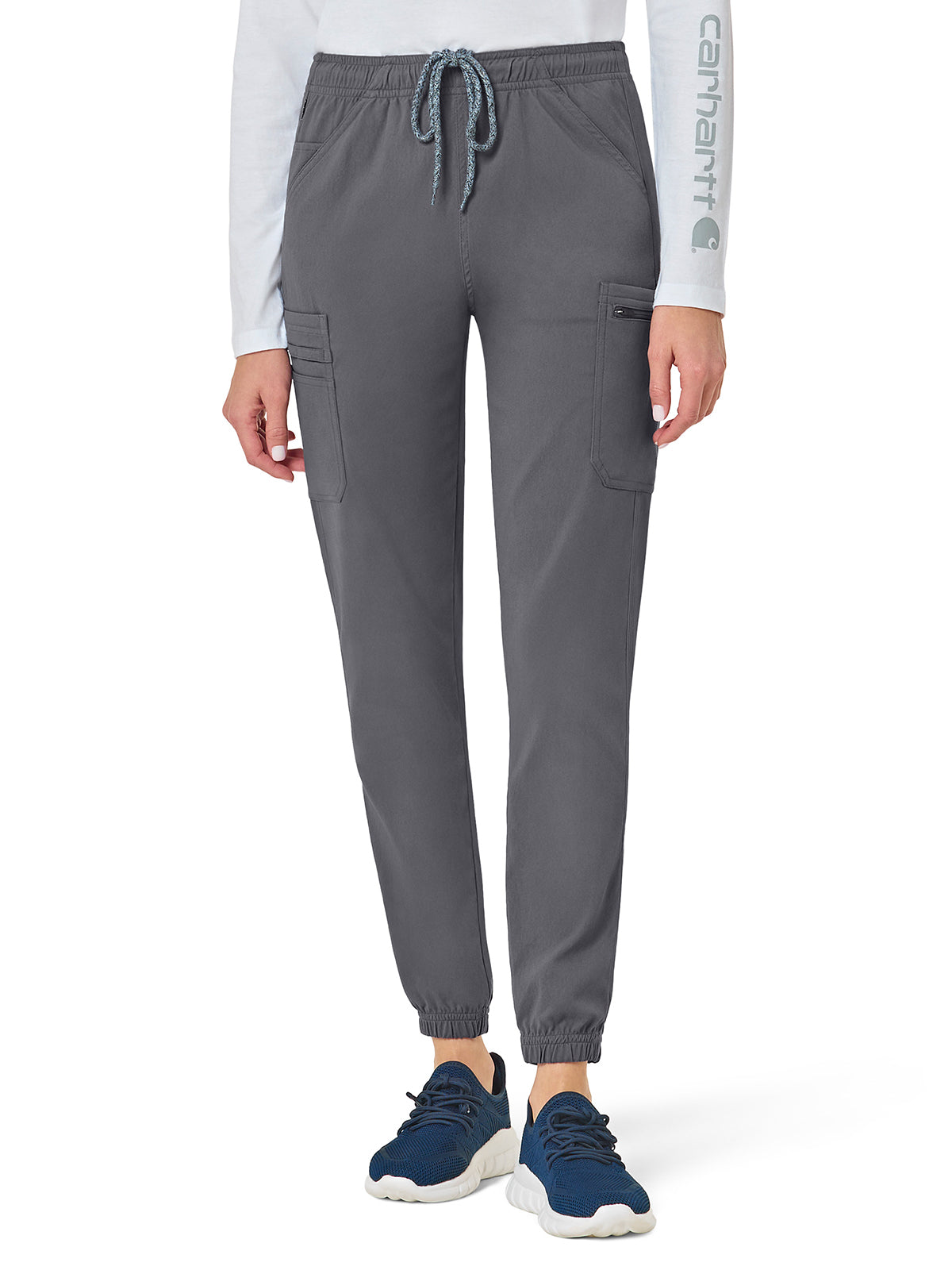 Built to move with Rugged Flex® stretch technology. HEIQ ECO DRY technology for eco-friendly durable water repellency. Full elastic waistband with full drawstring. Triple-needle stitching at outseam. Two front side-entry pockets with an inside pocket on wearer's right pocket. Two back pockets. Two double cargo patch pockets with an accessory loop on wearer's right cargo and zipper closure on wearer's left cargo. Elastic cuffs. Regular Inseam: 29", Petite Inseam: 27". Size M Leg Opening: 4 3/4".