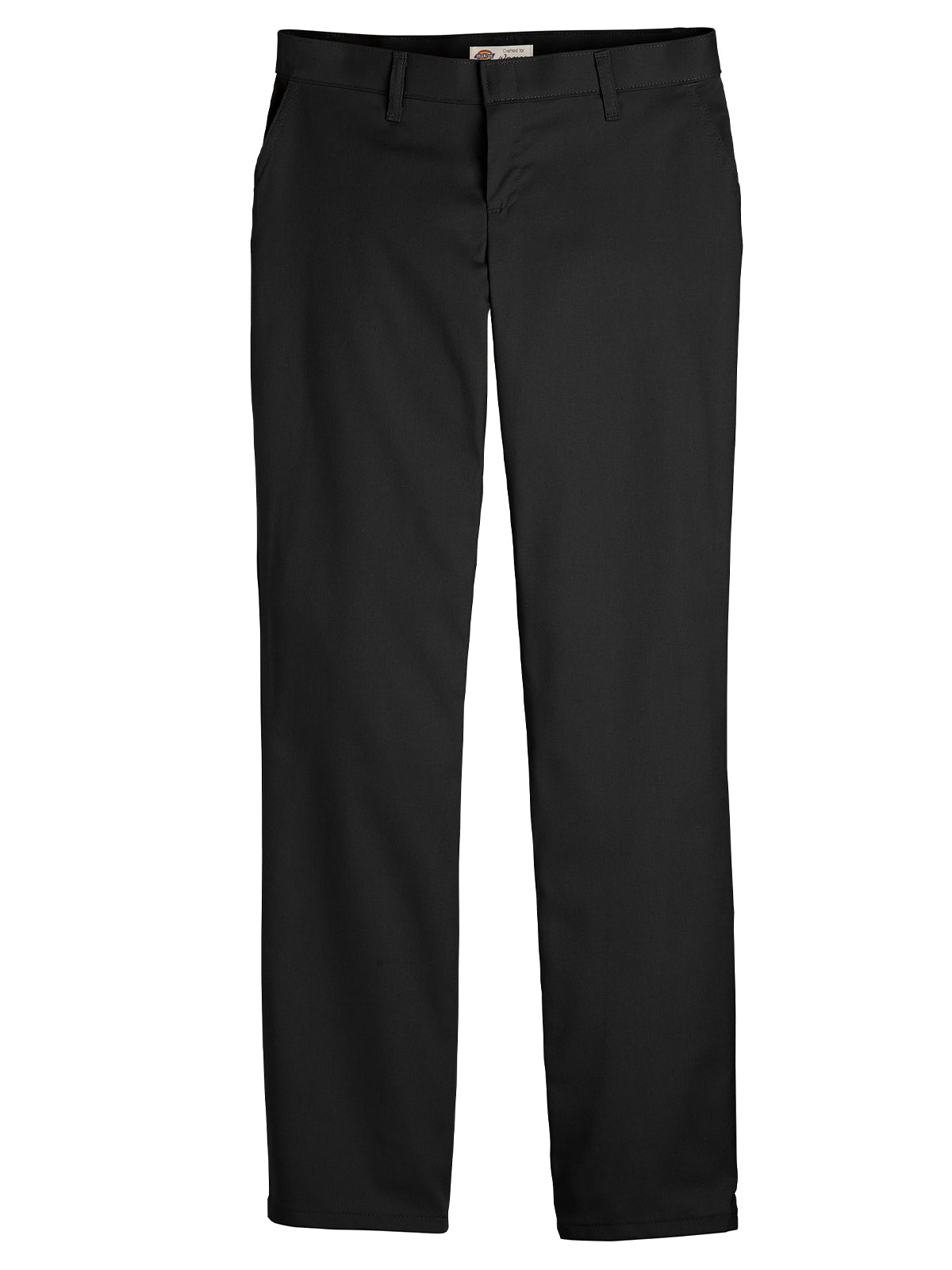 The Women's Premium Relaxed Straight Flat Front Pants sit slightly below the waist and has built-in stretch interlining in the waistband to provide additional comfort and mobility. It features easy-care stain release technology and resists wrinkles to keep a pressed and professional look.