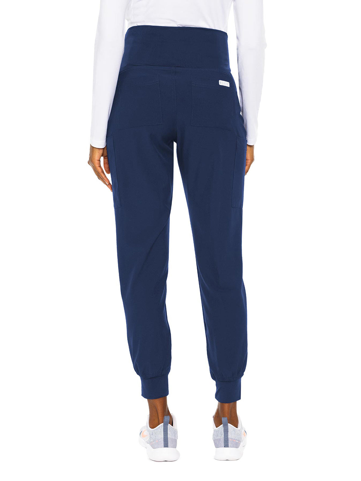 This Maternity fit jogger features a soft, dyed-to-match jersey knit high rise waist panel for belly coverage. There are four pockets for storage: two cargo pockets and two back patch pockets. Dyed-to-match jersey knit ankle cuffs. Tapered jogger leg, 9" leg opening. Inseam: 28 1/2"