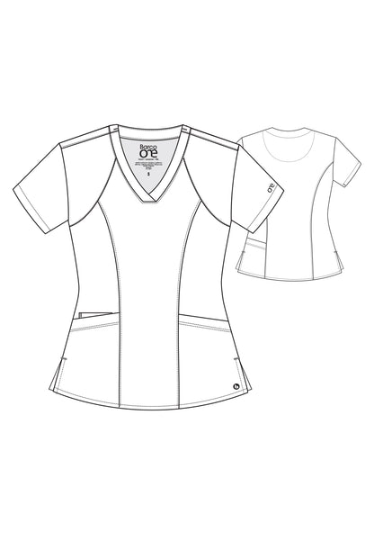 - Best Fit Scrub Top: This modern fit top is body-contoured for shape without being tight. Featuring a V-neck with princess seaming and 4 pockets, your comfort and security is assured all day long. LENGTH | 25.5" (Center Back)